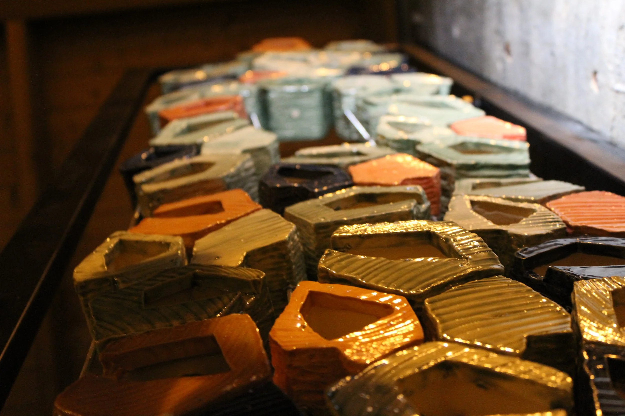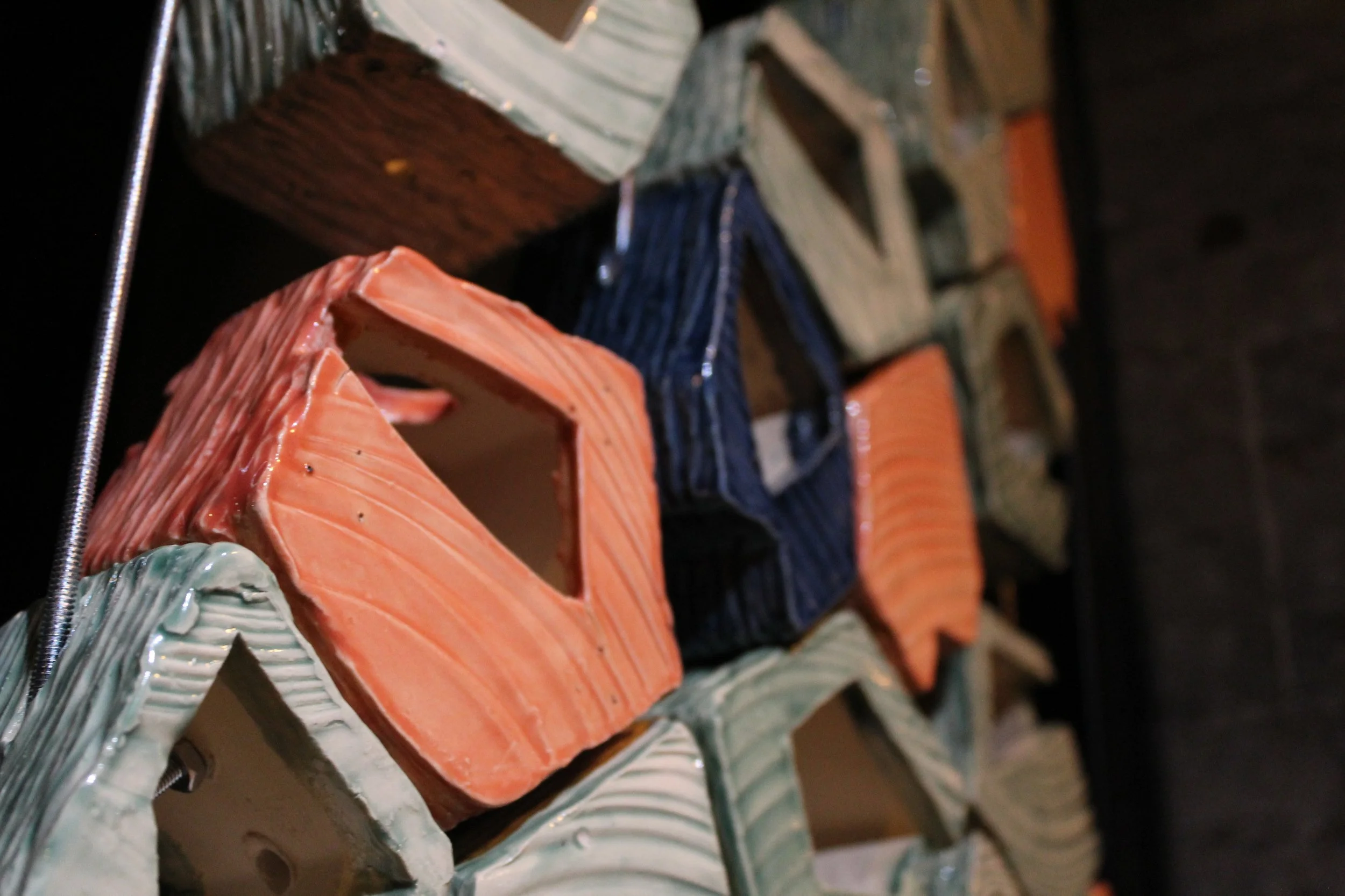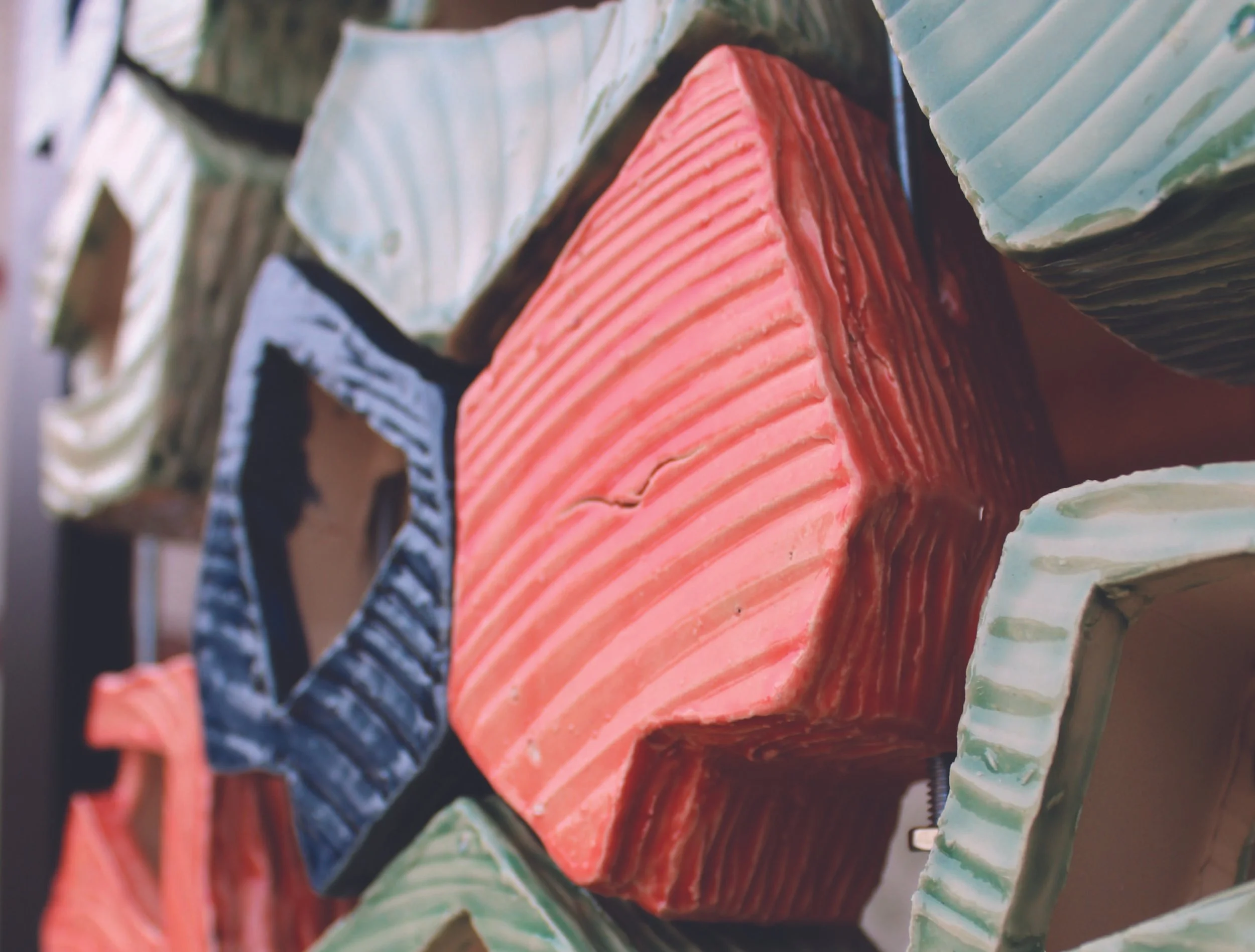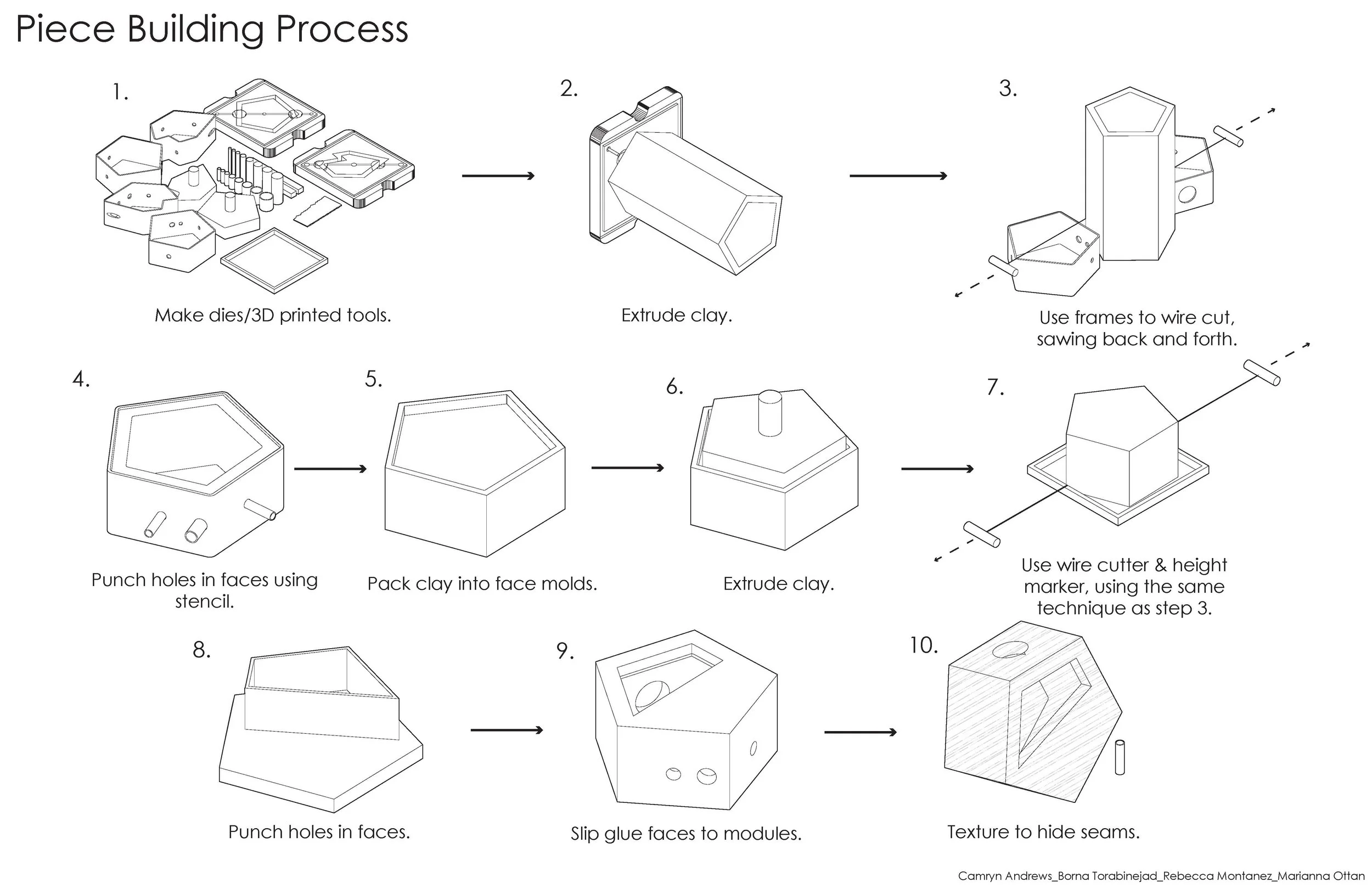 The modular clay screen wall at Woodbury University’s Solar House enhances the entry planter with both sculptural and functional qualities. Standing 8 feet tall, the wall consists of mega modules, each made from four smaller micro modules. These micro modules are extruded and hand-textured on all sides, creating dynamic surfaces that play with light and shadow.