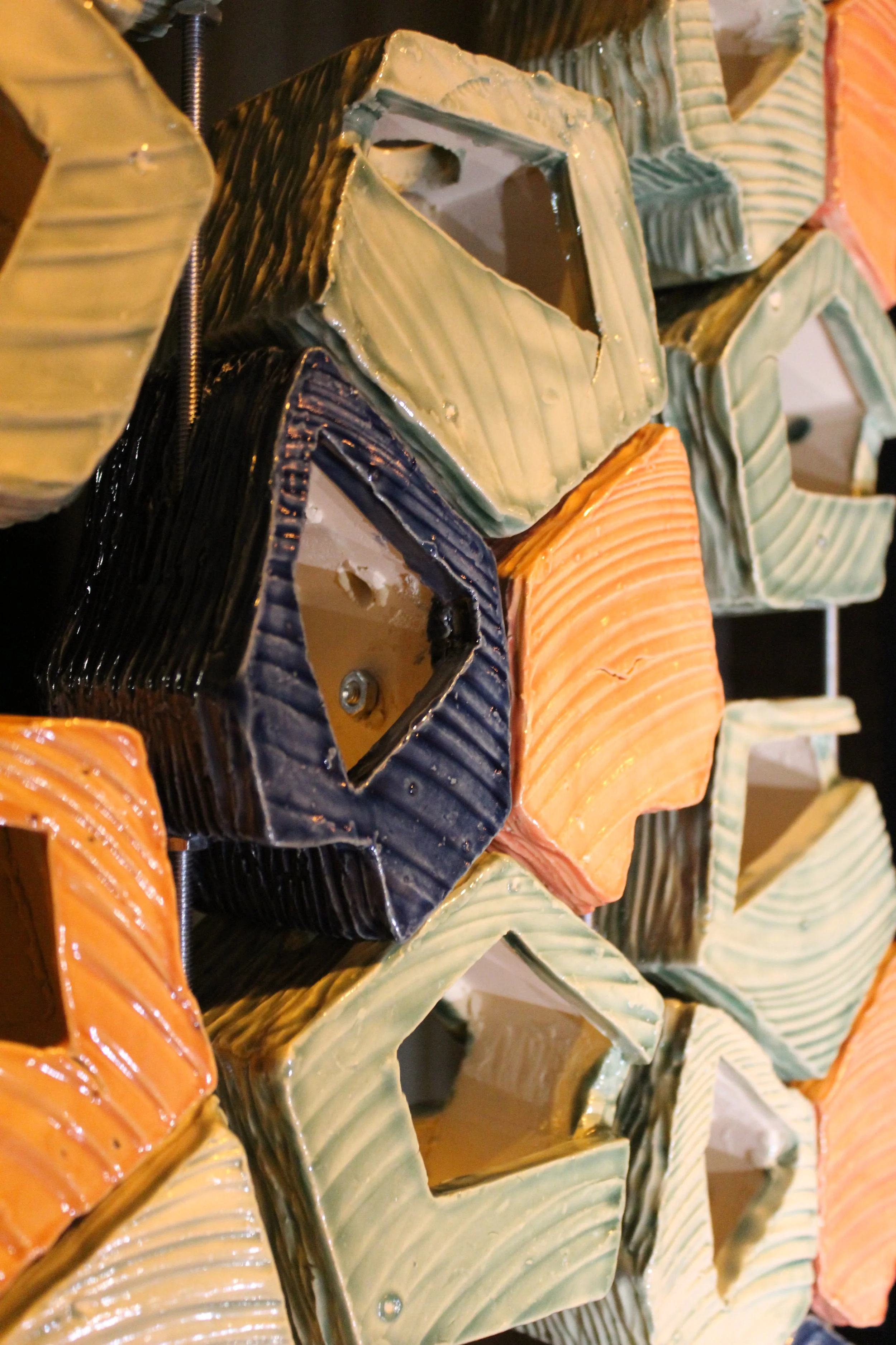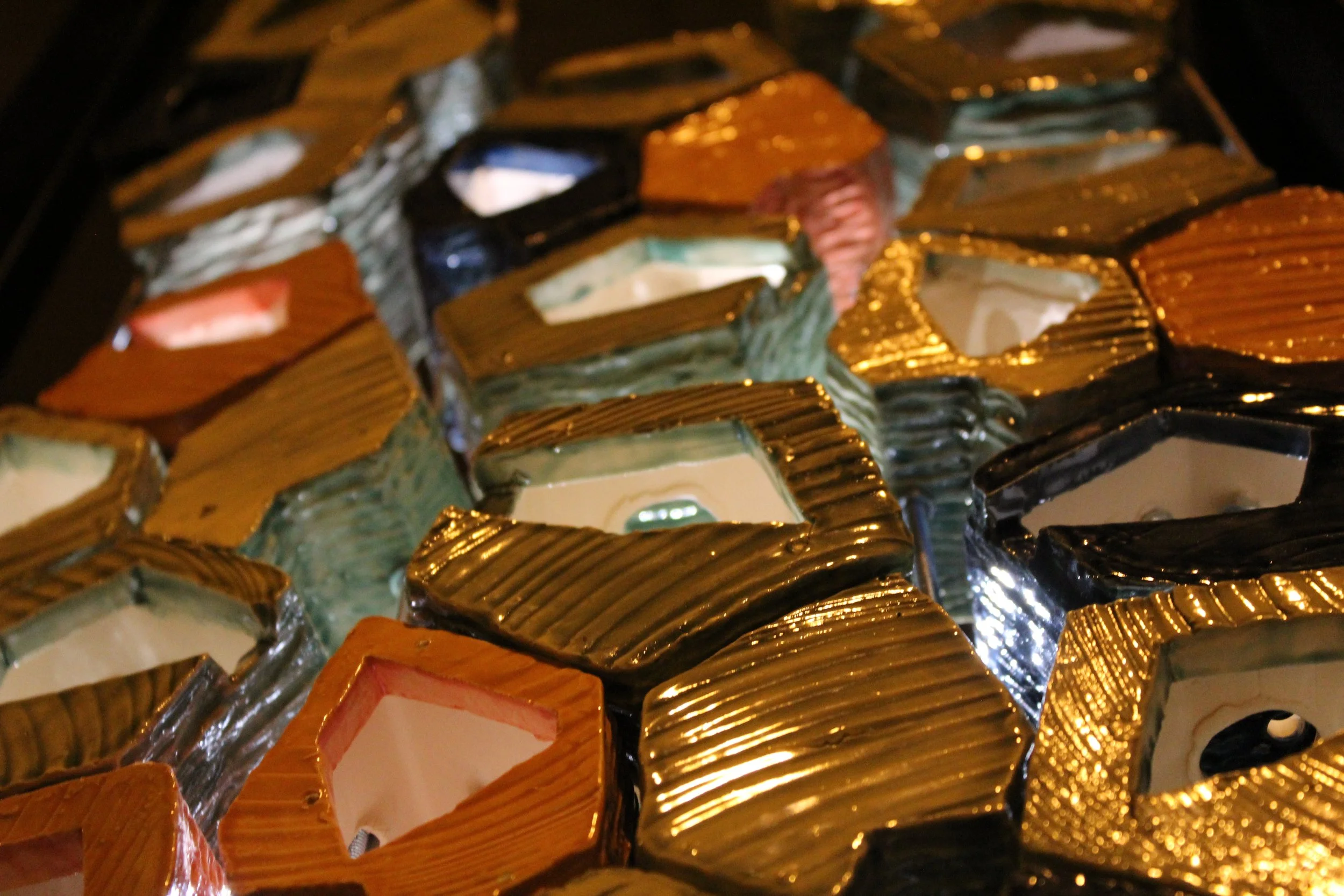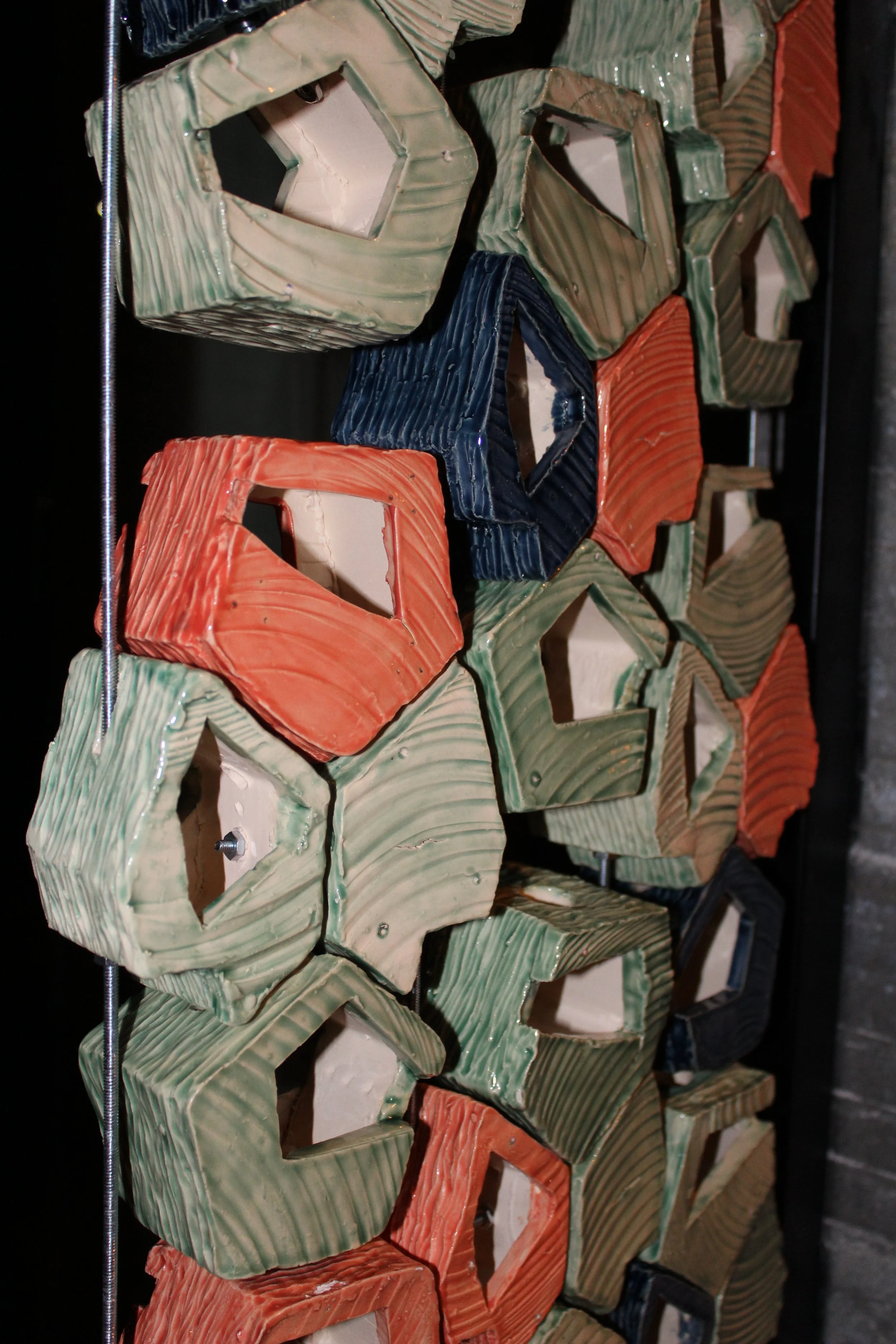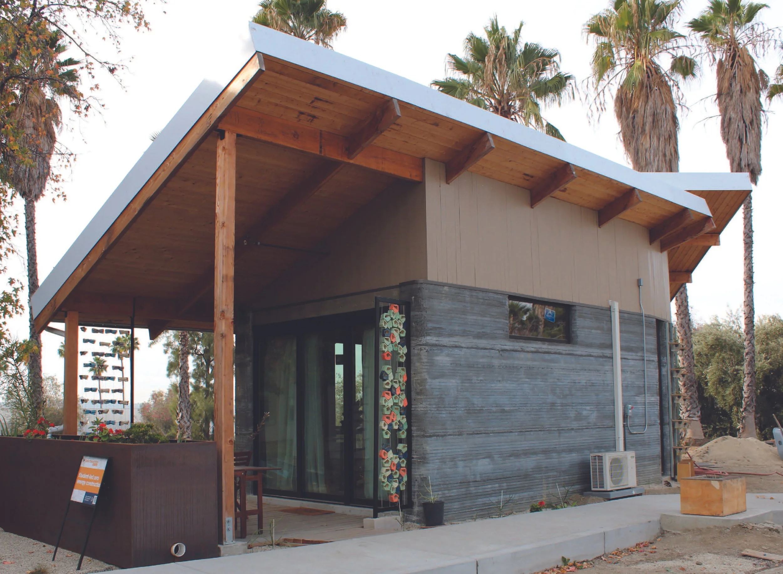 The modular clay screen wall at Woodbury University’s Solar House enhances the entry planter with both sculptural and functional qualities. Standing 8 feet tall, the wall consists of mega modules, each made from four smaller micro modules. These micro modules are extruded and hand-textured on all sides, creating dynamic surfaces that play with light and shadow.